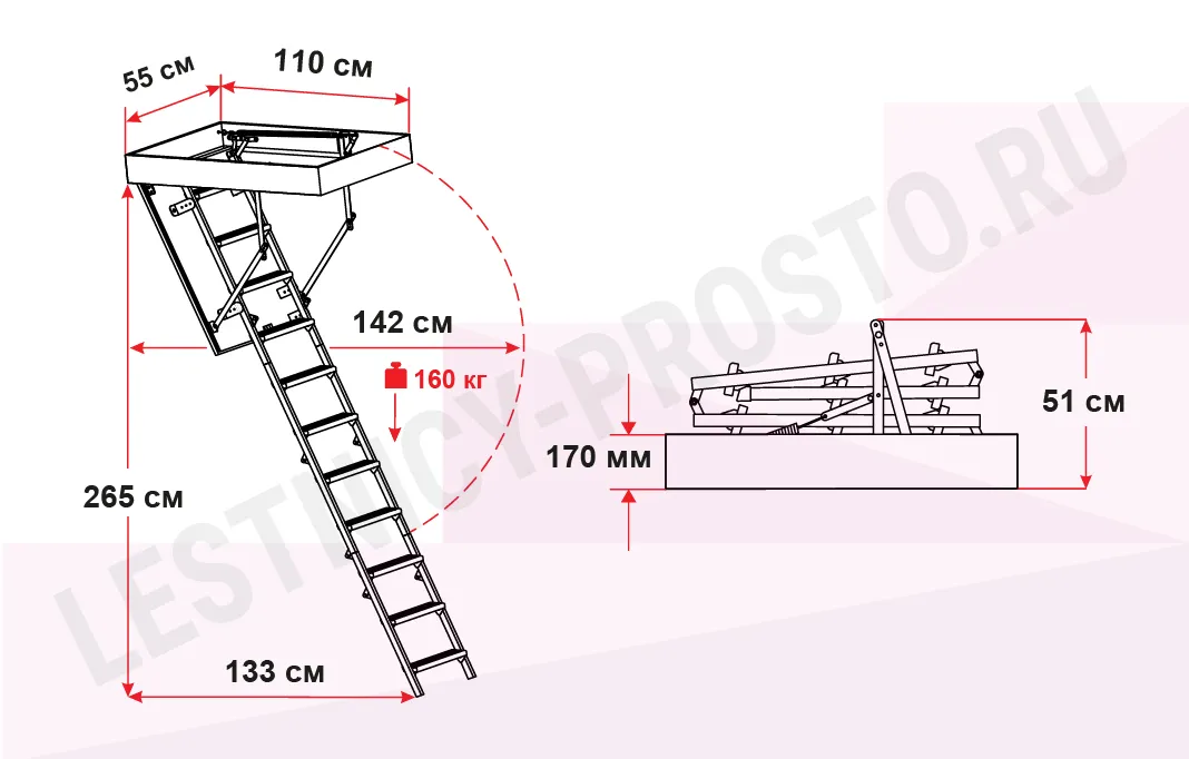Чердачная лестница OMAN MINI POLAR 55×110 см, h-265 см