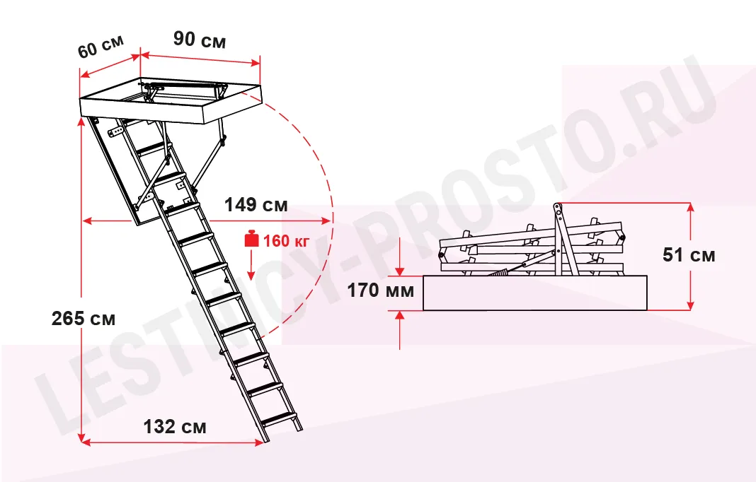 Чердачная лестница с люком OMAN MINI POLAR 60х90 см, h-265 см