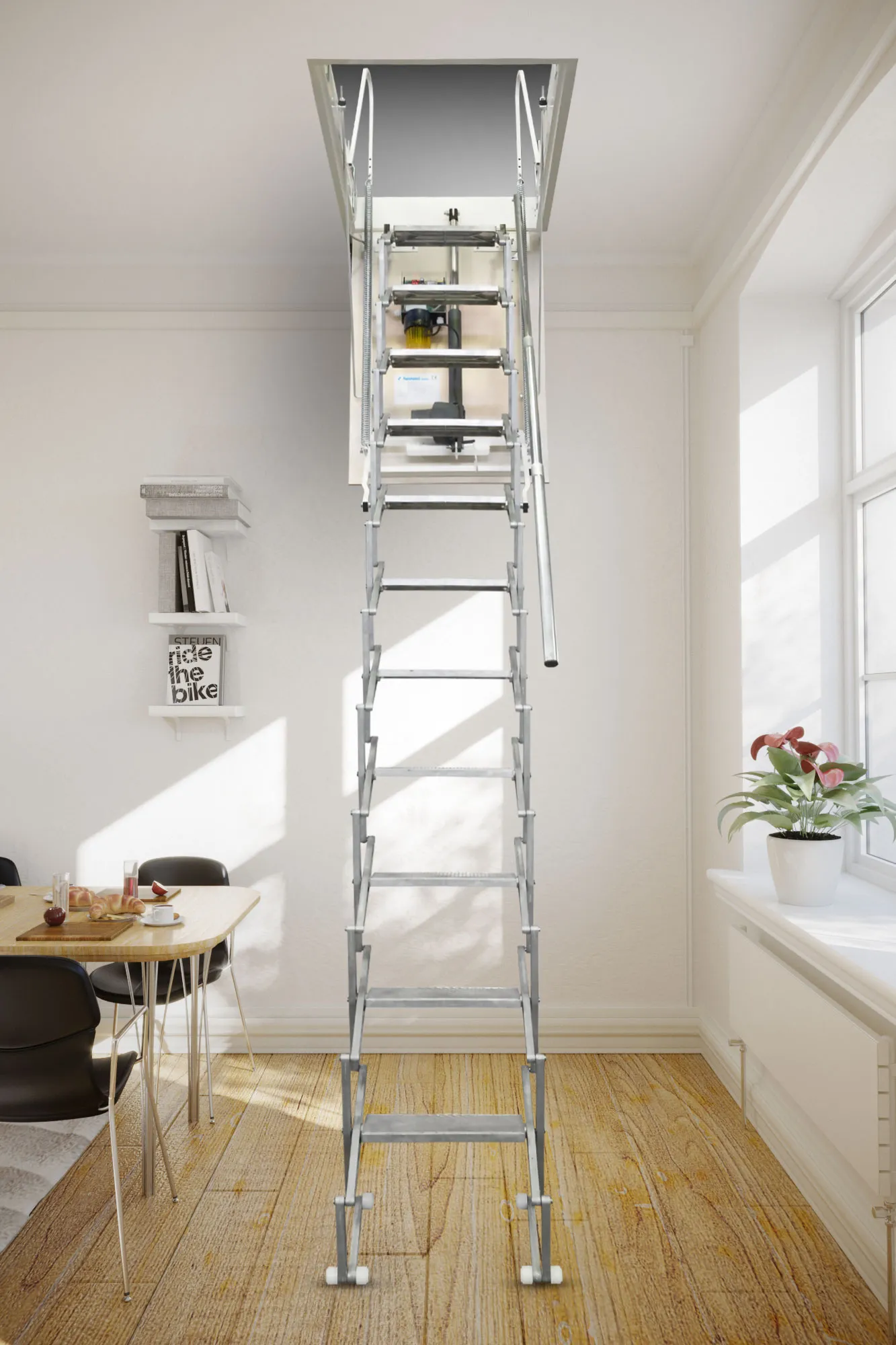 Чердачная лестница ZiKco с мотором, ножничного типа.