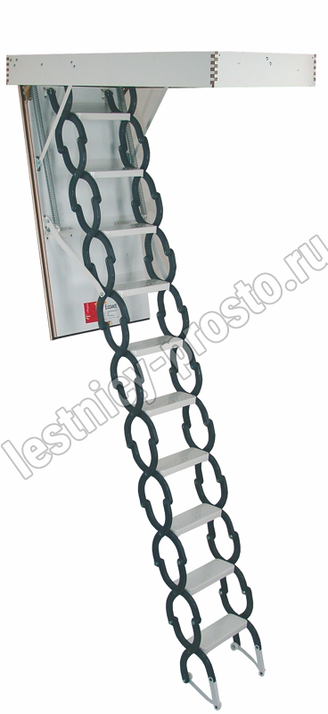 Ножничная лестница ELEGANCE износоустойчива, оснащена надежными металлическими защелками.