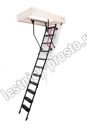 Лестница складная трехсекционная. Рабочая поверхность полностью выполнена из металла и покрашена порошковой краской. Термоизоляционная крышка типа "сэндвич", толщиной 47 мм, утеплена пенопластом, облицована с двух сторон ДCП белого цвета.