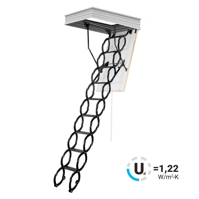 Все элементы лестницы выполнены из экологически чистых материалов и обработаны веществами, не содержащими тяжелых металлов. На ступенях антискользящие насечки. Короб лестницы изготовлен из металла. Термоизоляционная крышка типа "сэндвич" утеплена пенопластом, облицована с двух сторон ДСП белого цвета. Короб люка с уплотнителем. В комплекте деревянный стержень для открывания лестницы.