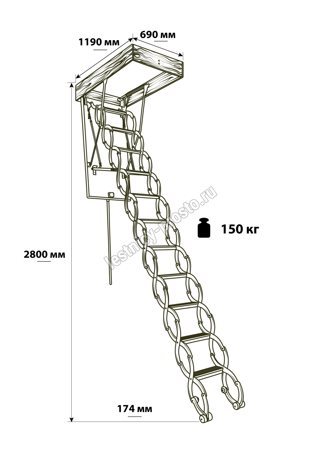 | Ножничная чердачная лестница HARMO 80х60х280 |