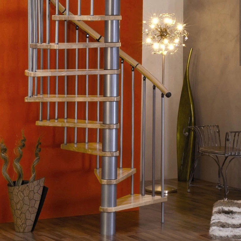 Удобная поворотная лестница на второй этаж. Дополнительные ограждения по первому маршу обеспечивают безопасность при подъеме и спуске, кроме того, небольшой угол подъема открывает всю площадь ступеней. Монтаж осуществляется силами двух человек на объекте по указаниям, приведенным в паспорте на лестницу.