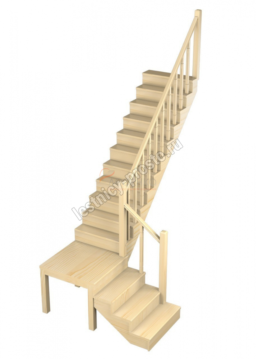 Деревянная межэтажная лестница ЛЕС-08, Бук с подступенкой