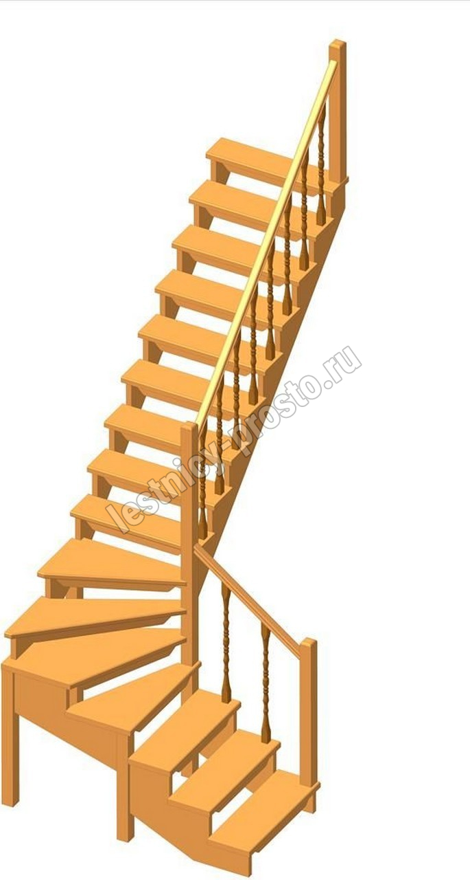 Деревянная межэтажная лестница ЛЕС-09 3310 проем 2800-900, Сосна