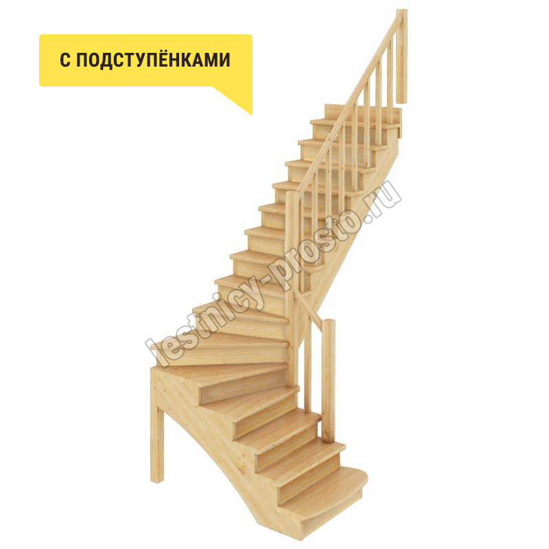 | Лестница из сосны К-001М/2 под покраску с подступёнками |