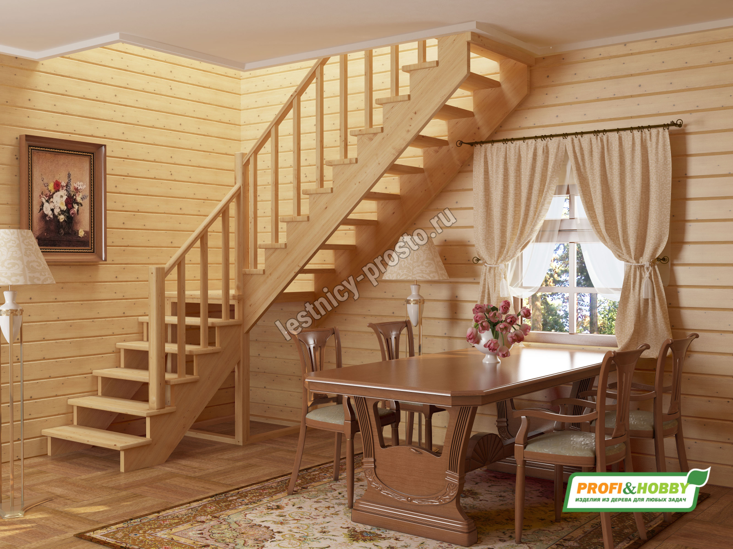 | Лестница из сосны К-002М/4 с подступёнками |
