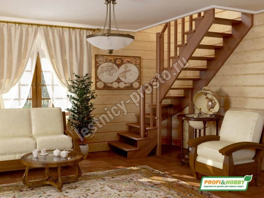 Ступени и поручень лестницы изготовлены из бука, остальные элементы из сосны.
