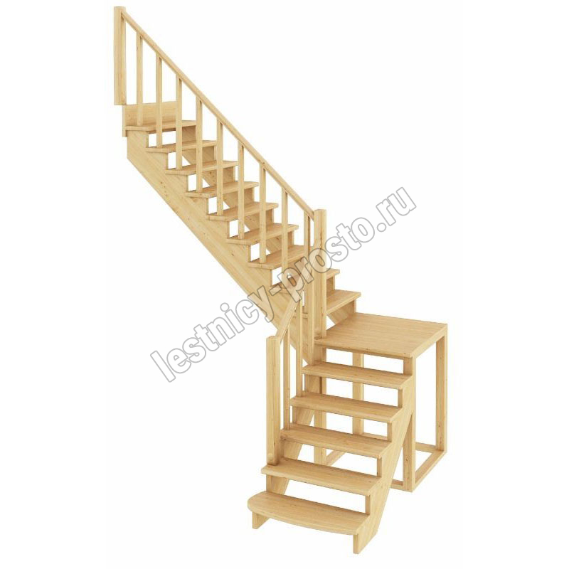 Базовый комплект включает в себя деревянные элементы лестницы и ограждения без какого-либо покрытия