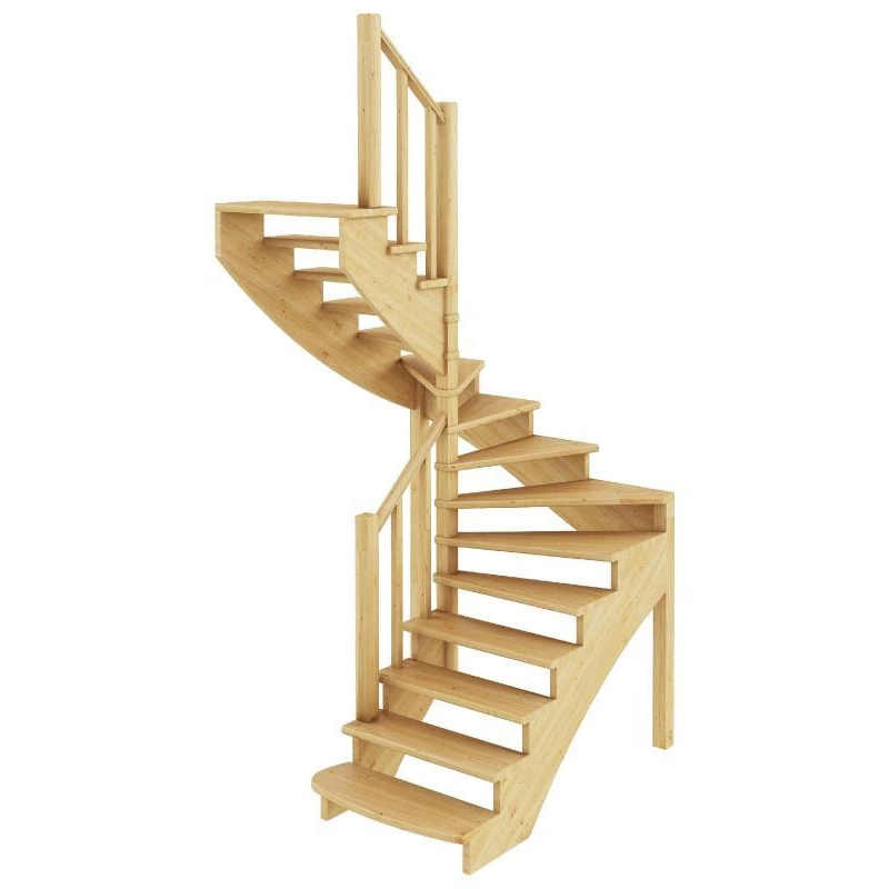 Базовый комплект включает в себя деревянные элементы лестницы и ограждения без какого-либо покрытия.