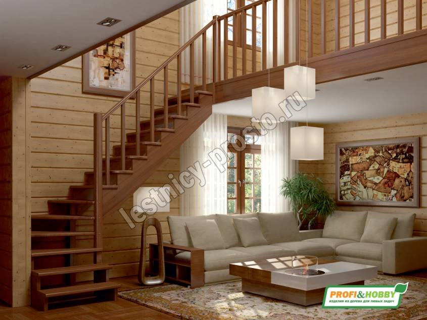 Цена указана за лестницу с дубовыми ступенями и поручнем, остальные элементы - сосна. Возможно изготовление этой лестницы целиком из дуба. Базовый комплект включает в себя деревянные элементы лестницы и ограждения без какого-либо покрытия.