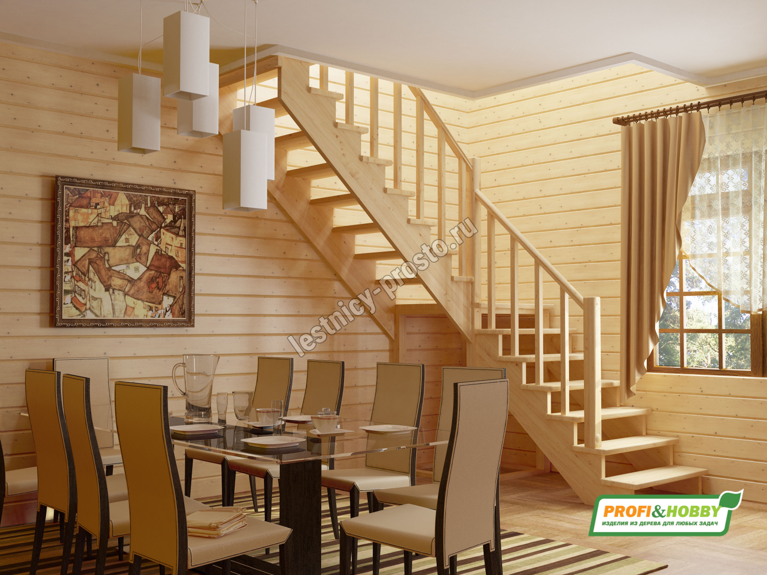 Ступени и поручень лестинцы изготовлены из дуба, остальные элементы из сосны.