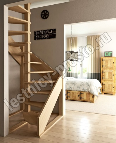 | Деревянная межэтажная лестница ЛЕС-1,2ВУ, Лиственница |