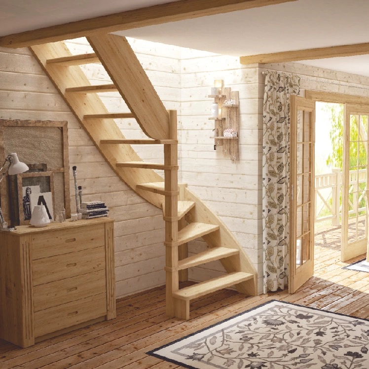 Базовый комплект включает в себя деревянные элементы лестницы без какого-либо покрытия.