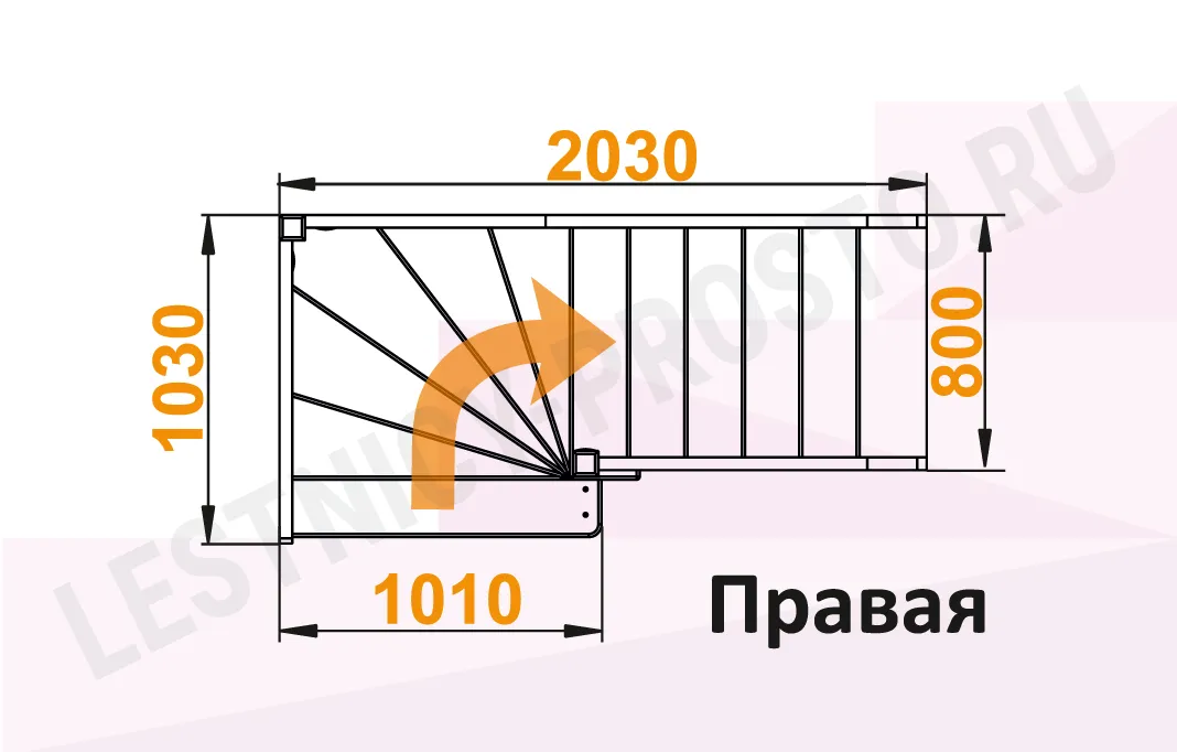 Схема лестницы ЛС-92М/4 с поворотом направо