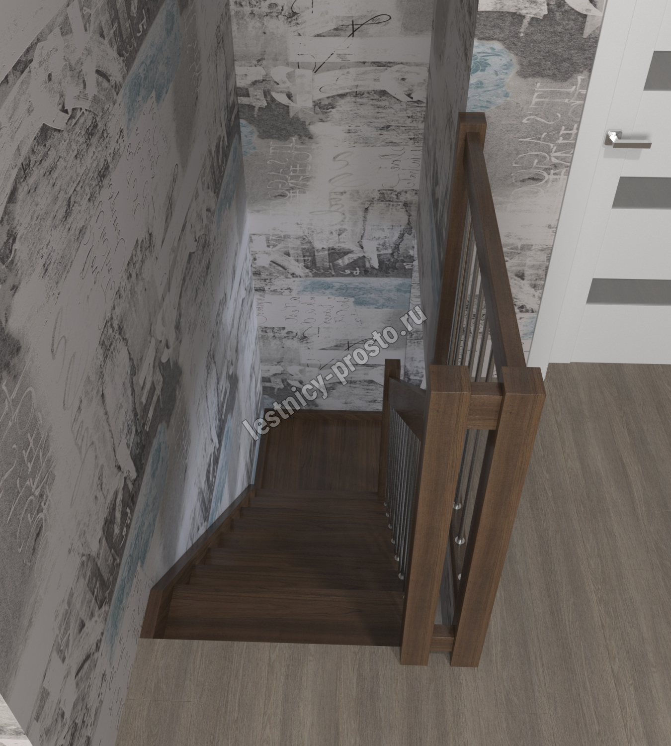 Лестница Prosto Console г-образная забежная бук, h247.5 см (10 ступеней)