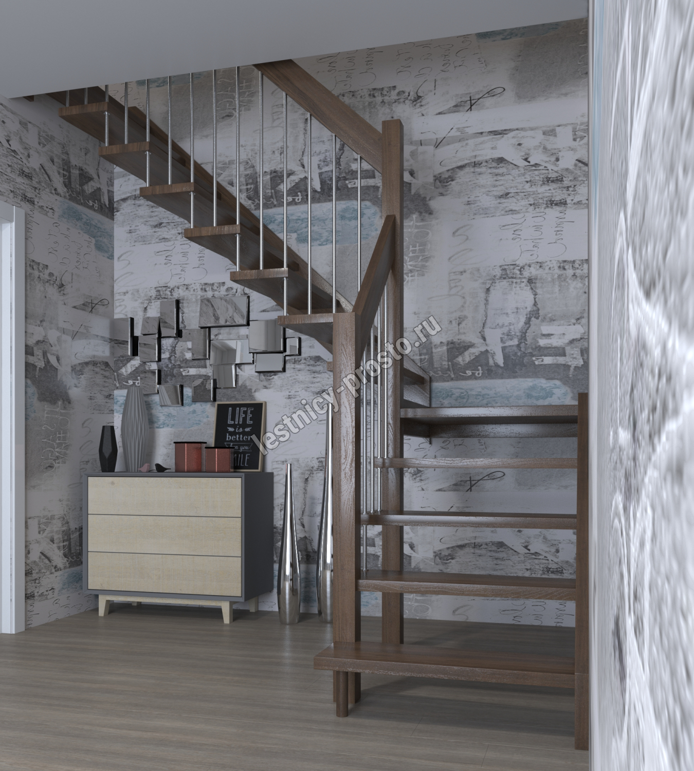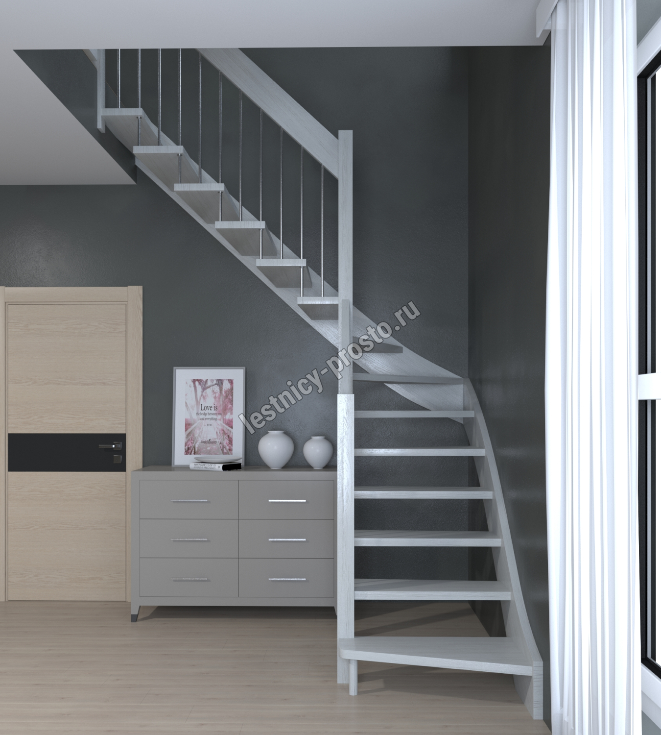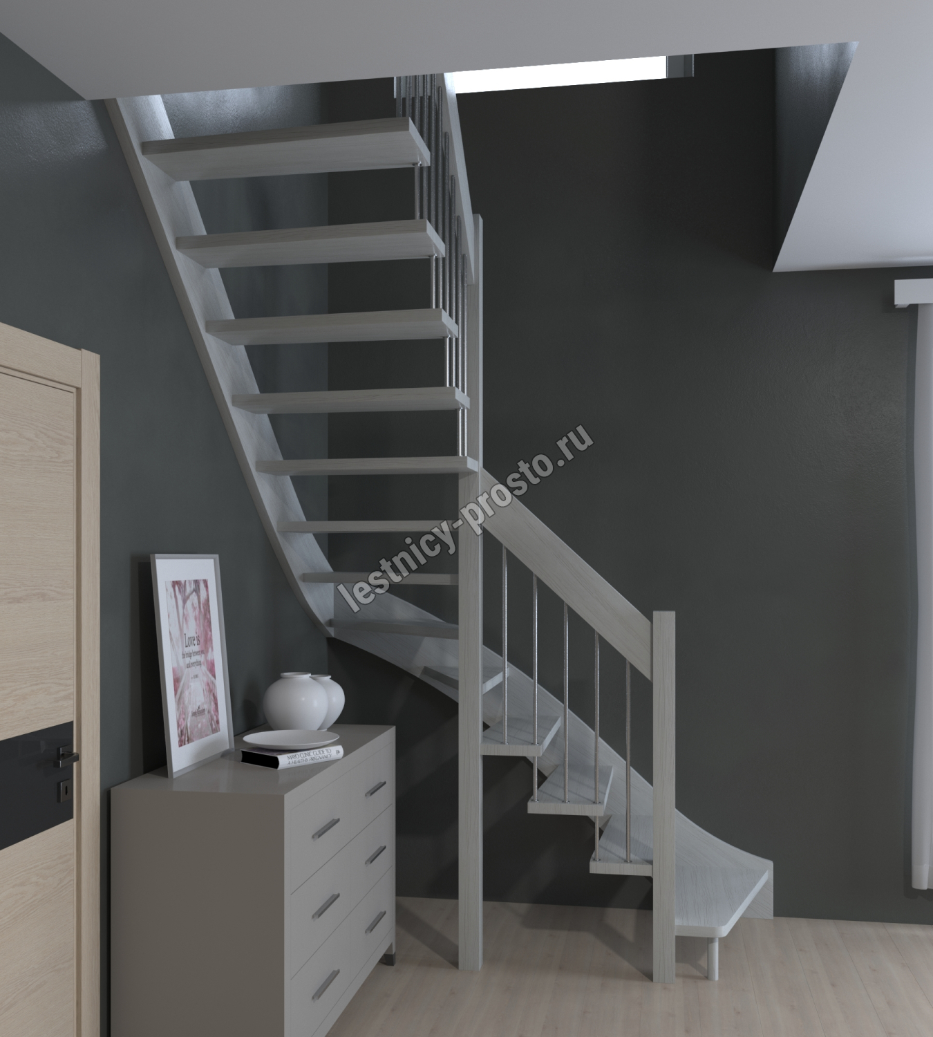 Лестница Prosto Console г-образная забежная сосна, h292.5 см (12 ступеней)