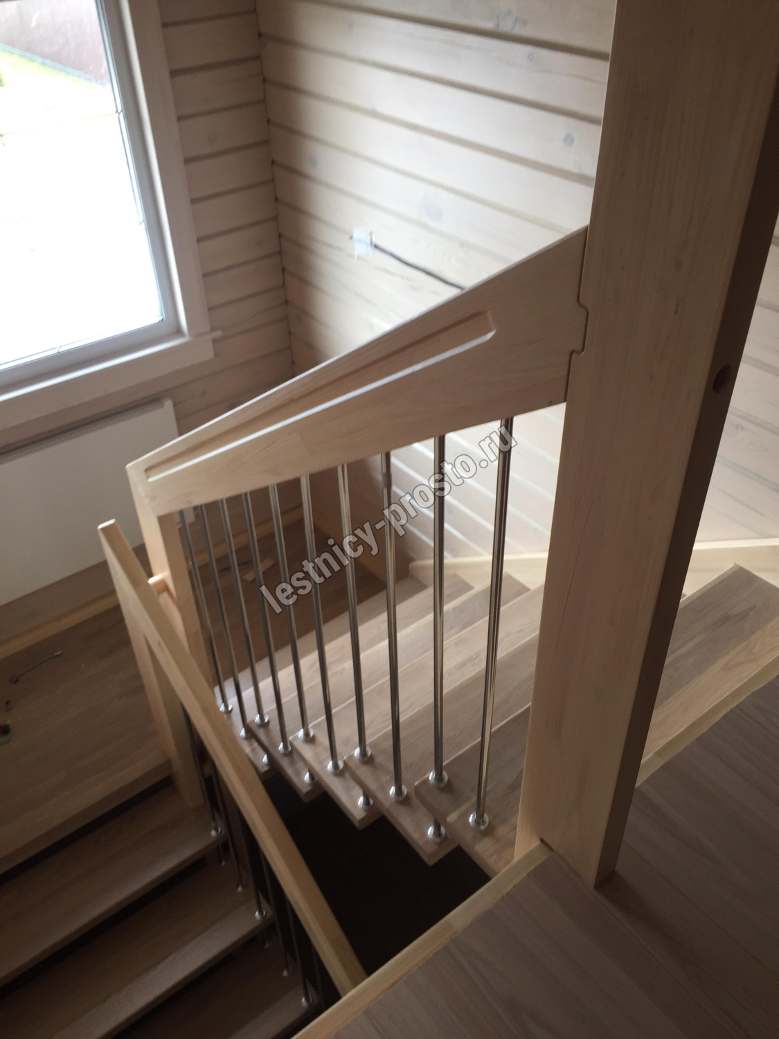 Надёжная современная лестница выполнена по немецкой технологии. Стоимость указана для лестницы с ограждением (с одной стороны); Поставляется в разобранном виде, в комплекте необходимый крепёж; Лестницу можно собрать самостоятельно; Так же, вы можете заказать услугу монтажа нашими специалистами; 4 вида породы дерева для изготовления лестницы: сосна, бук, ясень, дуб; возможна комбинированная лестница: из сосны (ступени бук, ясень, дуб); Деревянные элементы без какого-либо покрытия, отшлифованы, готовы к покраске. За дополнительную плату, вы можете изменить любые параметры, а именно: увеличить глубину ступени; увеличить ширину марша до 900 мм. и выше; заказать подступенки к лестнице; заказать отделку перекрытия (между 1-м и 2-м этажами); изготовить дополнительный промежуточный марш; заказать ограждение 2-го этажа; покраска в любой цвет или несколько цветов или покрытие защитными средствами; дополнение балясины из нержавеющей стали деревянными элементами; покраска балясин из нержавеющей стали порошковой краской в цвет RAL.