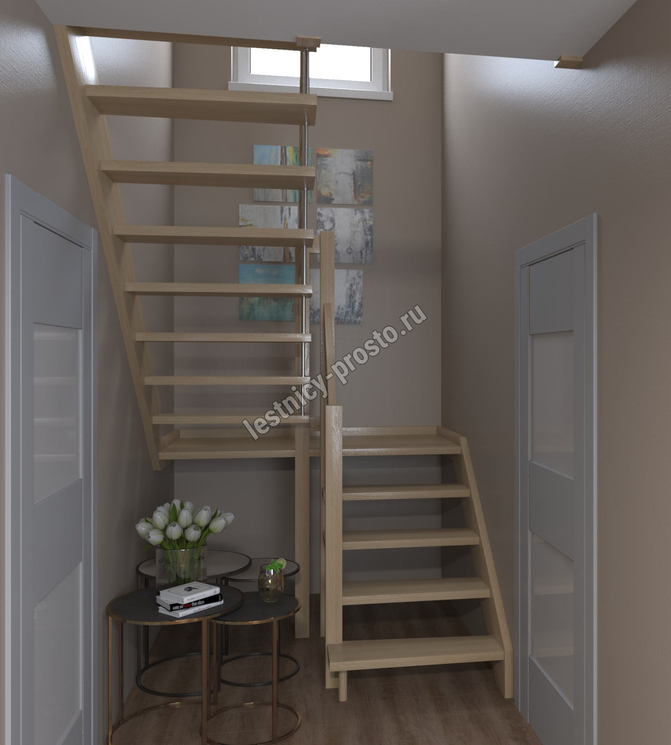 Лестница Prosto Console п-образная забежная, бук h270 см (11 ступеней)