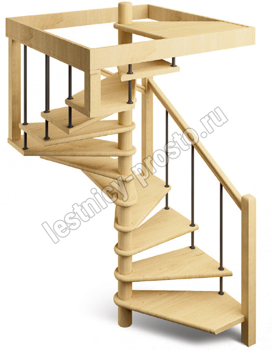 Базовый комплект включает в себя деревянные элементы лестницы и ограждения без какого-либо покрытия.