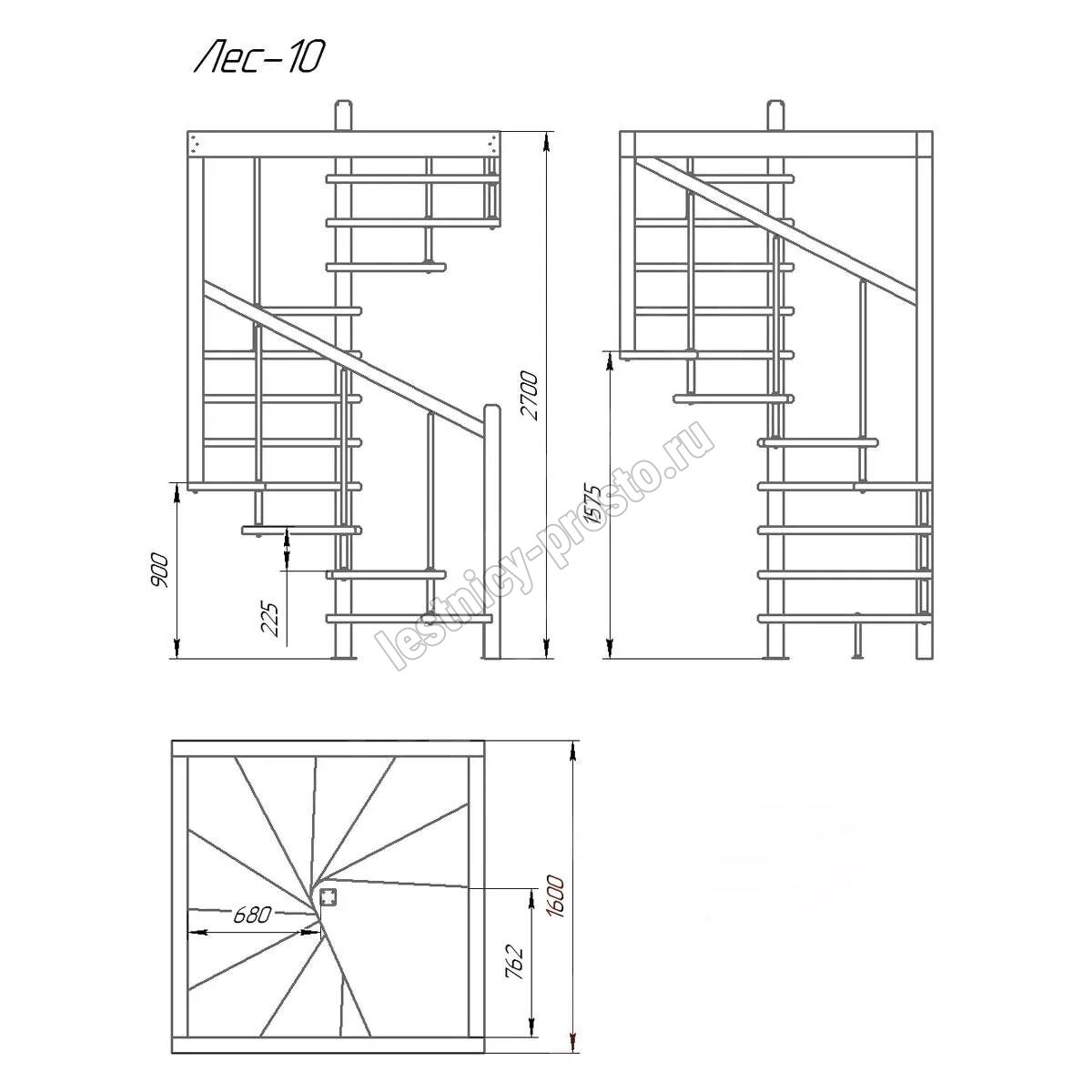 | Деревянная межэтажная лестница ЛЕС-10, Бук |