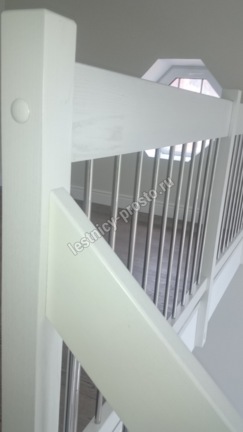 Надёжная современная лестница выполнена по немецкой технологии. Стоимость указана для лестницы с ограждением (с одной стороны); Поставляется в разобранном виде, в комплекте необходимый крепёж; Лестницу можно собрать самостоятельно; Так же, вы можете заказать услугу монтажа нашими специалистами; 4 вида породы дерева для изготовления лестницы: сосна, бук, ясень, дуб; возможна комбинированная лестница: из сосны (ступени бук, ясень, дуб); Деревянные элементы без какого-либо покрытия, отшлифованы, готовы к покраске. За дополнительную плату, вы можете изменить любые параметры, а именно: увеличить глубину ступени; увеличить ширину марша до 900 мм. и выше; заказать подступенки к лестнице; заказать отделку перекрытия (между 1-м и 2-м этажами); изготовить дополнительный промежуточный марш; заказать ограждение 2-го этажа; покраска в любой цвет или несколько цветов или покрытие защитными средствами; дополнение балясины из нержавеющей стали деревянными элементами; покраска балясин из нержавеющей стали порошковой краской в цвет RAL.