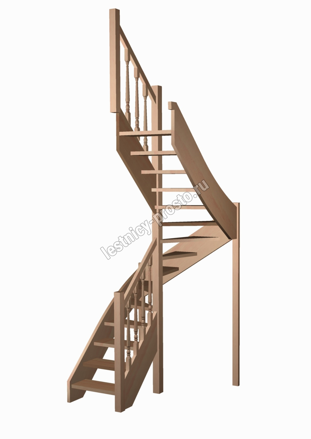Базовый комплект включает в себя деревянные элементы лестницы и ограждения без какого-либо покрытия. В стандартной комплектации лестницы поставляются с квадратными столбами и точеными балясинами, при желании, можно заменить вид ограждений на любые другие из нашего каталога (оплачивается и оговаривается отдельно). Под заказ возможно изготовление данной лестницы с другими размерами, подходящими вашему помещению.