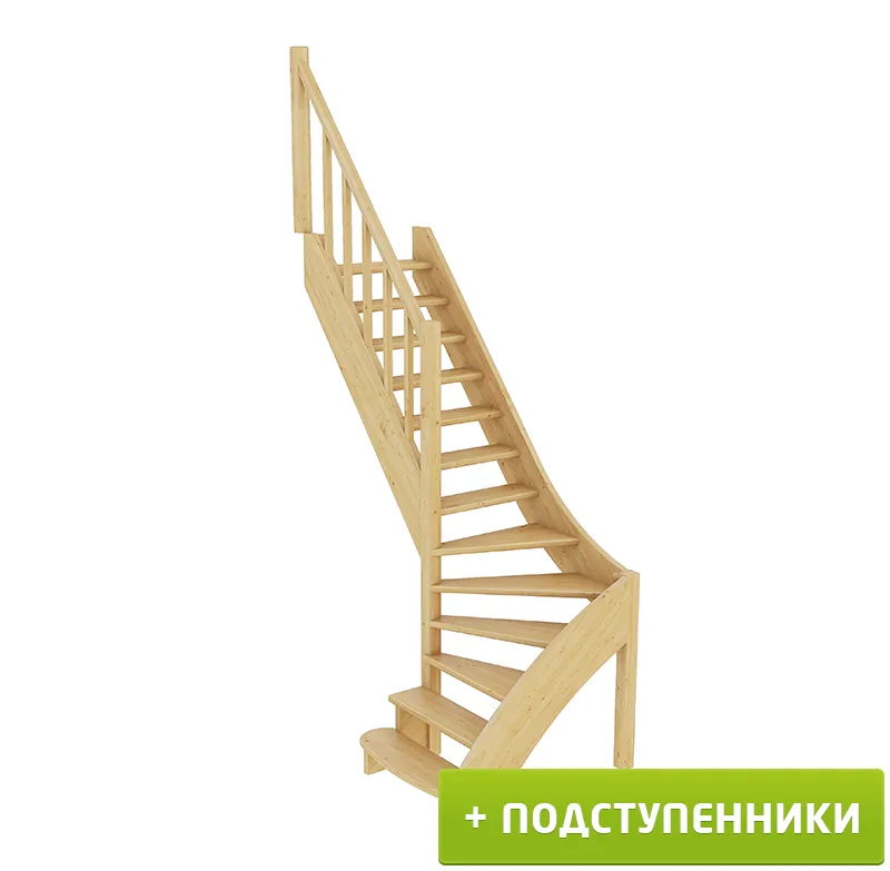 Лестница изготавливается под заказ. Возможны варианты подходящие под необходимые размеры проёма. Базовое ограждение можно заменить на кованое или точеное. Лестницу можно дополнить подступенями, бортиками, миниподступенями. Первую ступень можно заменить на пригласительную - лекальную. Классическая модель поворотной лестницы раскрывает всю природную красоту натуральных материалов. У лестницы комфортная высота шага, удобный широкий марш и угол подъема. Указана стоимость лестницы без какого-либо покрытия.