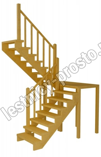 Классическая модель поворотной лестницы раскрывает всю природную красоту натуральных материалов. У лестницы комфортная высота шага, удобный широкий марш и угол подъема. Лестница изготавливается под заказ. Возможны варианты подходящие под разные размеры проёма. Базовое ограждение можно заменить на кованое или точеное. В дополнение можно приобрести бортики, подступени, или мини-подступени. Первую ступень можно заменить на пригласительную - лекальную. Стоимость указана для лестницы без какого-либо покрытия.