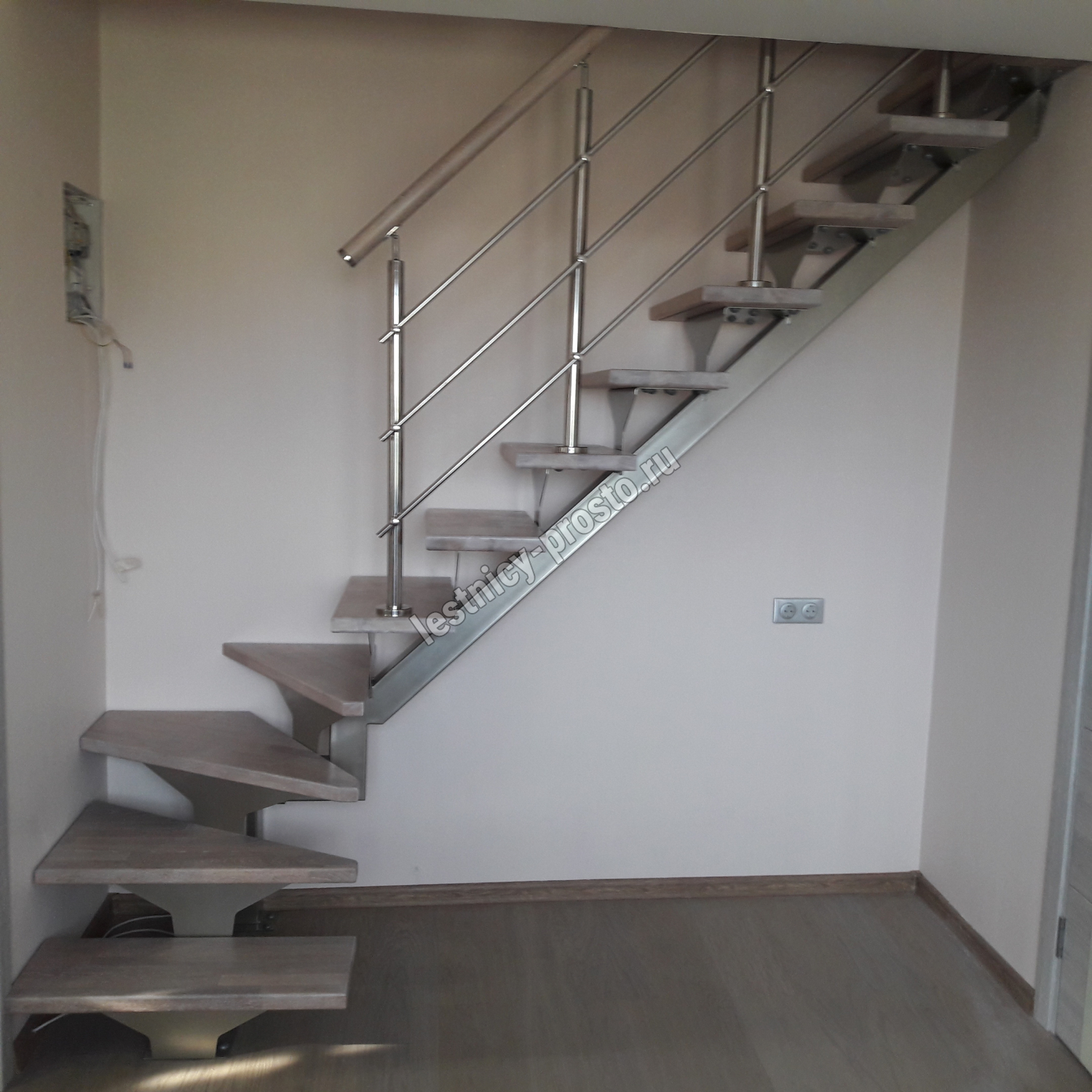Комплект ограждений для Г-образной лестницы PROSTO MONO из 13 ступеней.