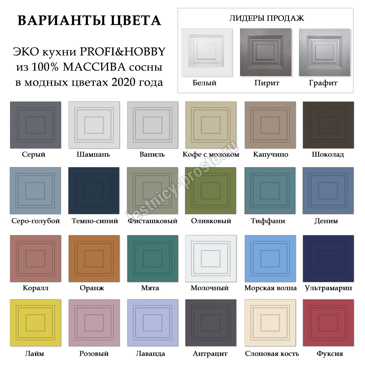 Небольшой кухонный гарнитур из 100% массива сосны шириной всего 2 и высотой 2,32 метра (верхние шкафы 90 см). Один из самых распространенных проектов кухни, который подойдёт для небольшой квартиры, загородного дома, гостиницы или хостела. Цвет на выбор - 27 вариантов (при заказе кухни в нашем интернет магазине просьба указывать название цвета в комментариях).