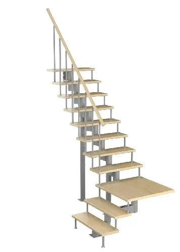 Каркас лестницы представляет собой набор модулей, которые комплектуются уже готовыми к монтажу.