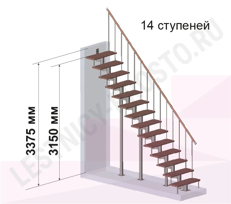 | Модульная лестница PROSTO Module прямая, h315, лиственница |
