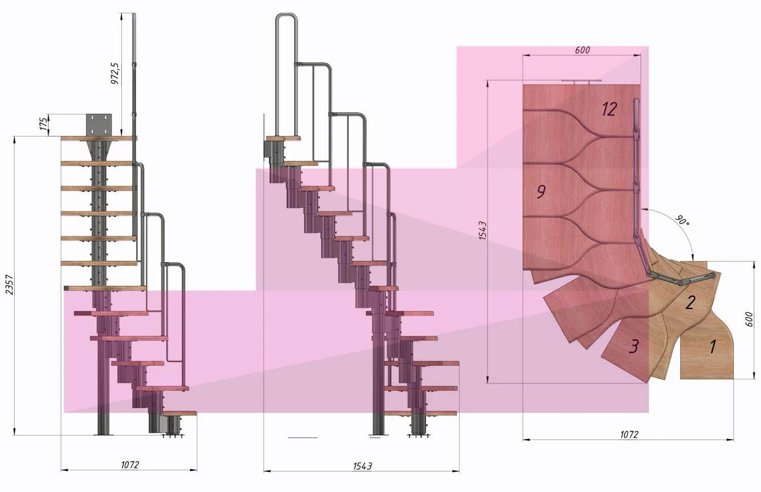 Высота лестницы 2160 - 3120 (12 ступеней) мм