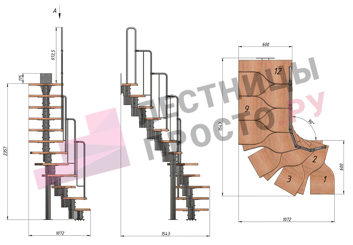Высота лестницы 2160 - 3120 (12 ступеней) мм