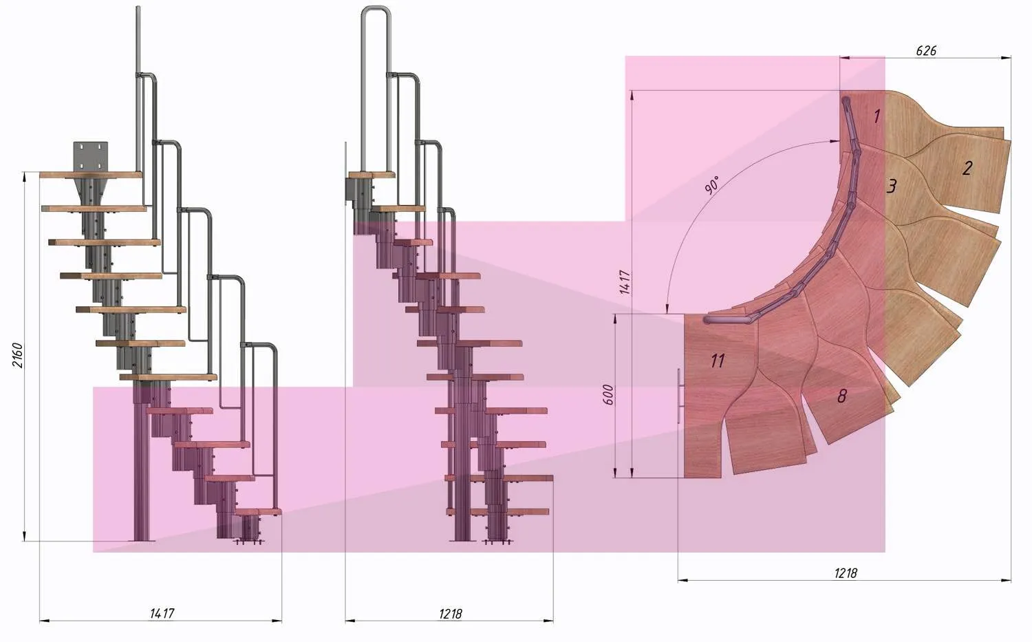 Высота лестницы 1980 - 2880 (11 ступеней) мм