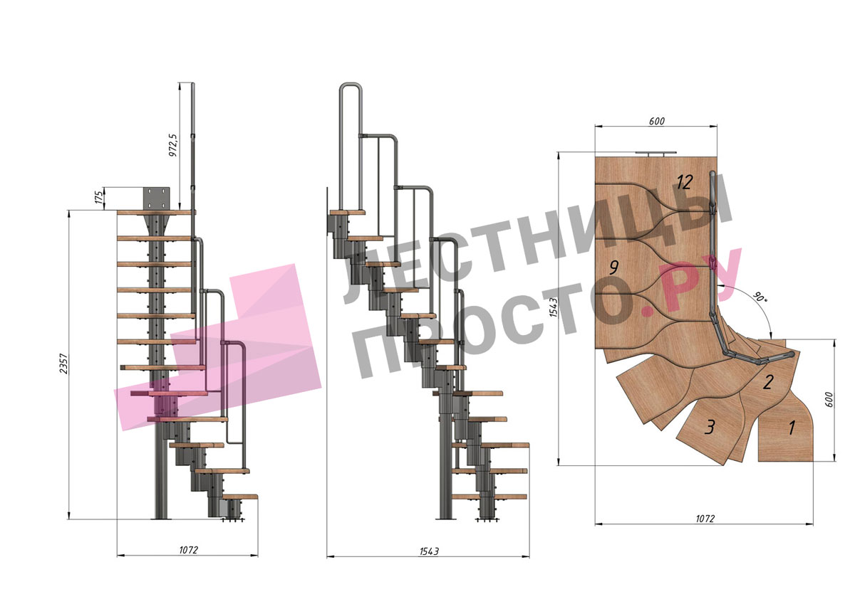 Высота лестницы 2160 - 3120 (12 ступеней) мм