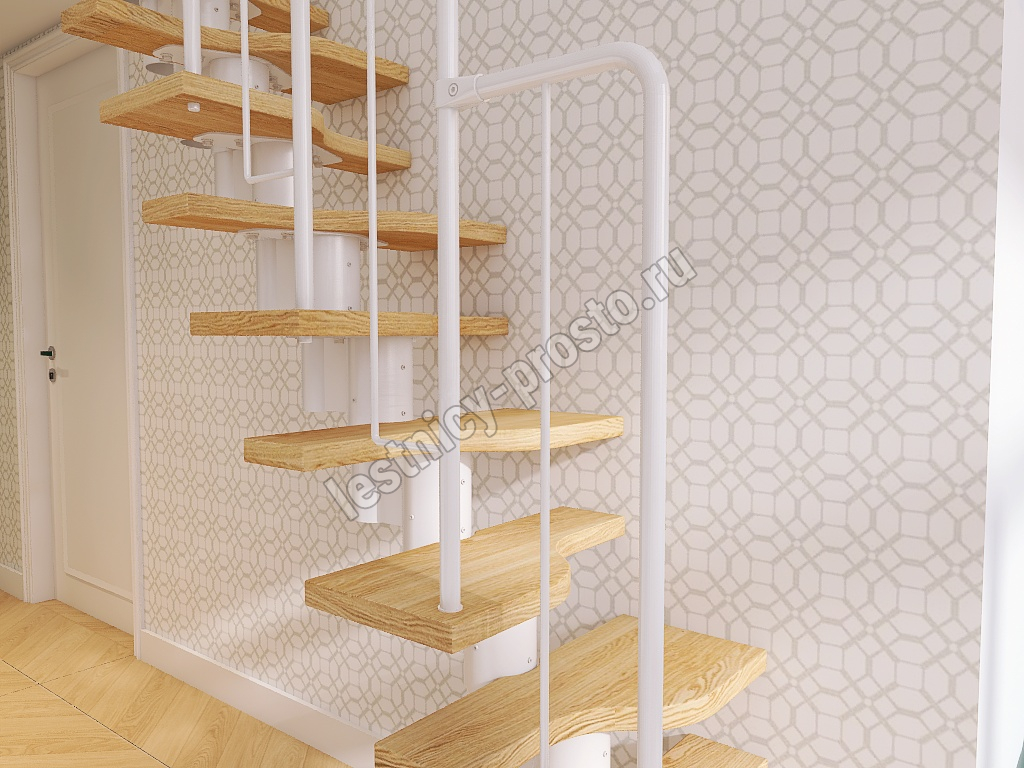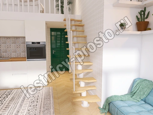 Лестница Prosto Urban White гусиный шаг 700 мм, h234-336 см (13 ступеней), бук