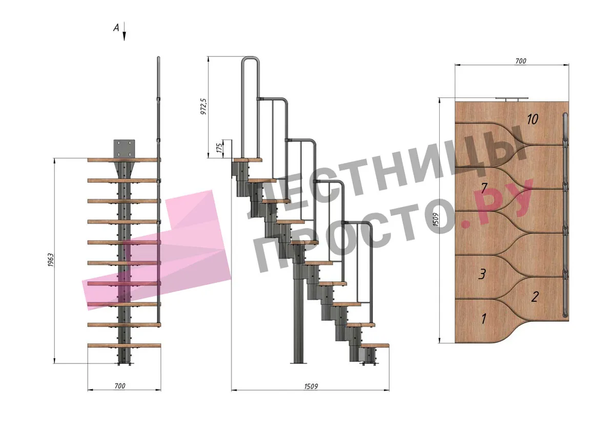 Высота лестницы 1980 - 3600 мм