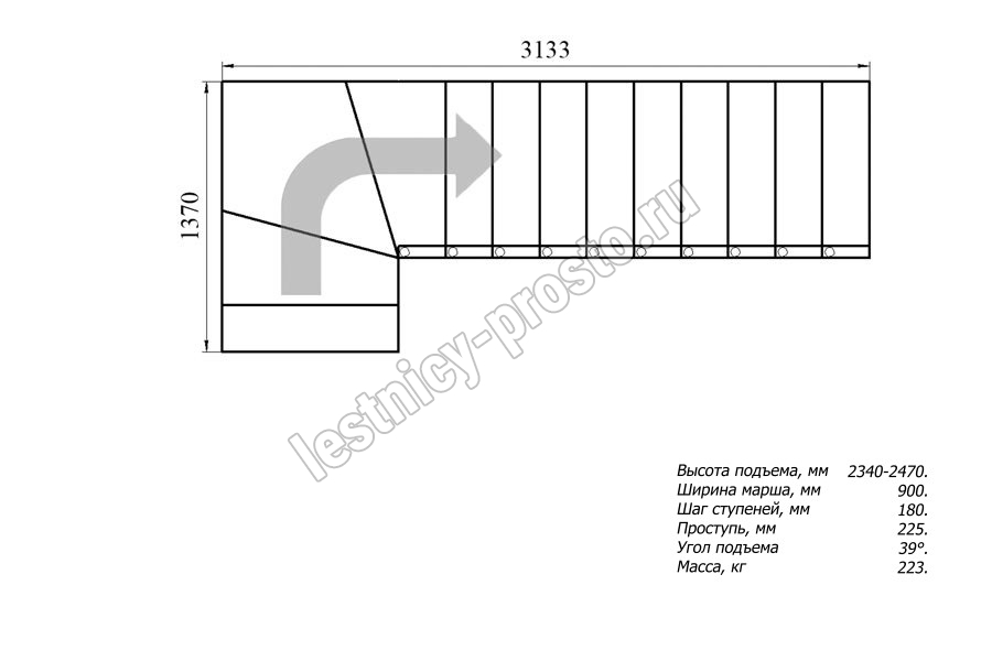 Модульная лестница Фаворит 180 2340-2470, Белый, Сосна, Нержавеющая сталь