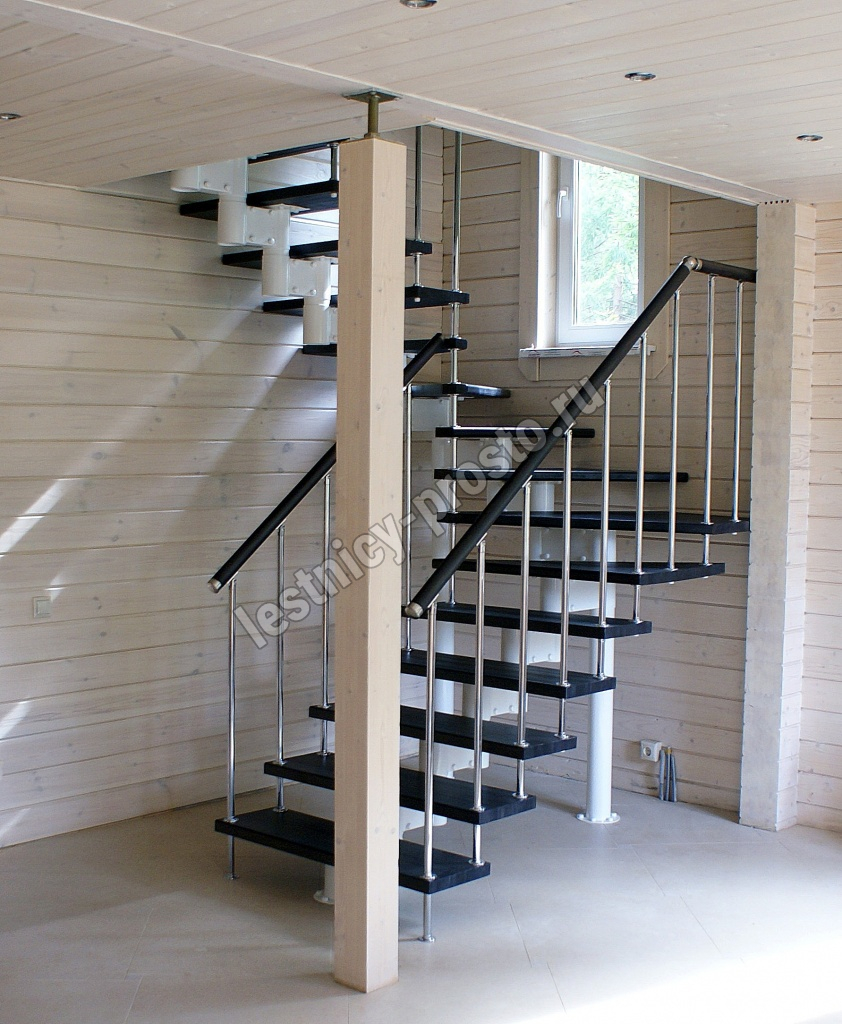 Каркас лестницы представляет собой набор модулей, которые комплектуются уже готовыми к монтажу.