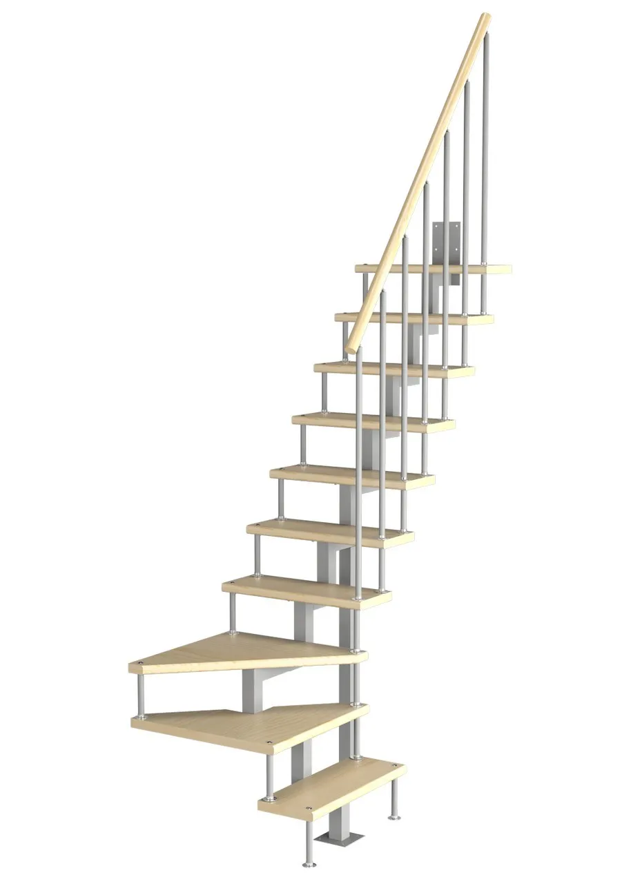 Модульная малогабаритная лестница Компакт 2250-2475, Белый, Лиственница, Нержавеющая сталь