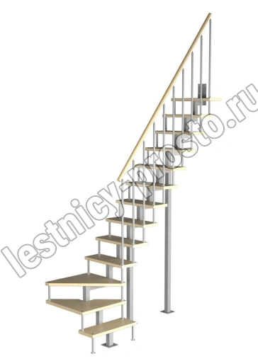 Модульная малогабаритная лестница Компакт 2925-3150, Серый, Бук, Нержавеющая сталь