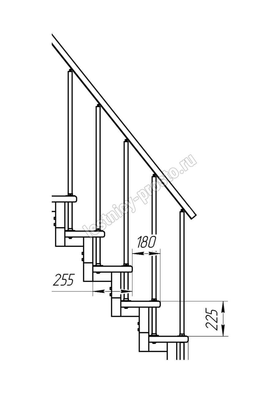 Модульная малогабаритная лестница Линия 2025-2250, Серый, Лиственница, Крашеная