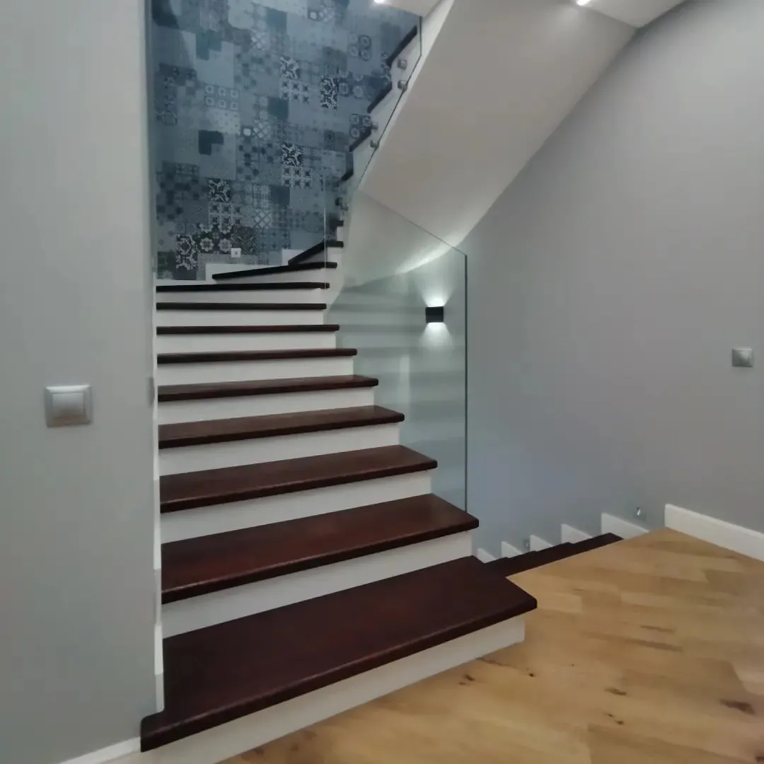 Ступени лестницы изготовлены из дерева категории А/В паркетной склейки без какого-либо покрытия.