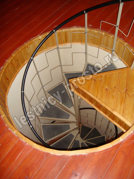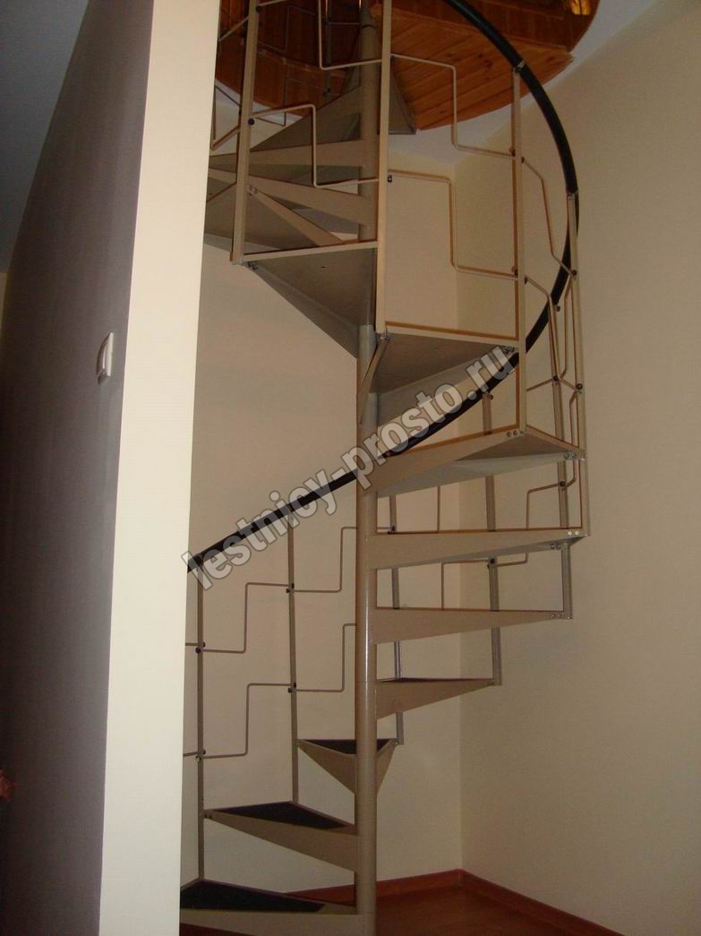 Компактная металлическая винтовая лестница КАСКАД. Ступени лестницы покрыты специальным антискользящим материалом.