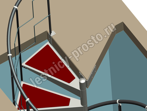 Компактная металлическая винтовая лестница КАСКАД. Ступени лестницы покрыты специальным антискользящим материалом.