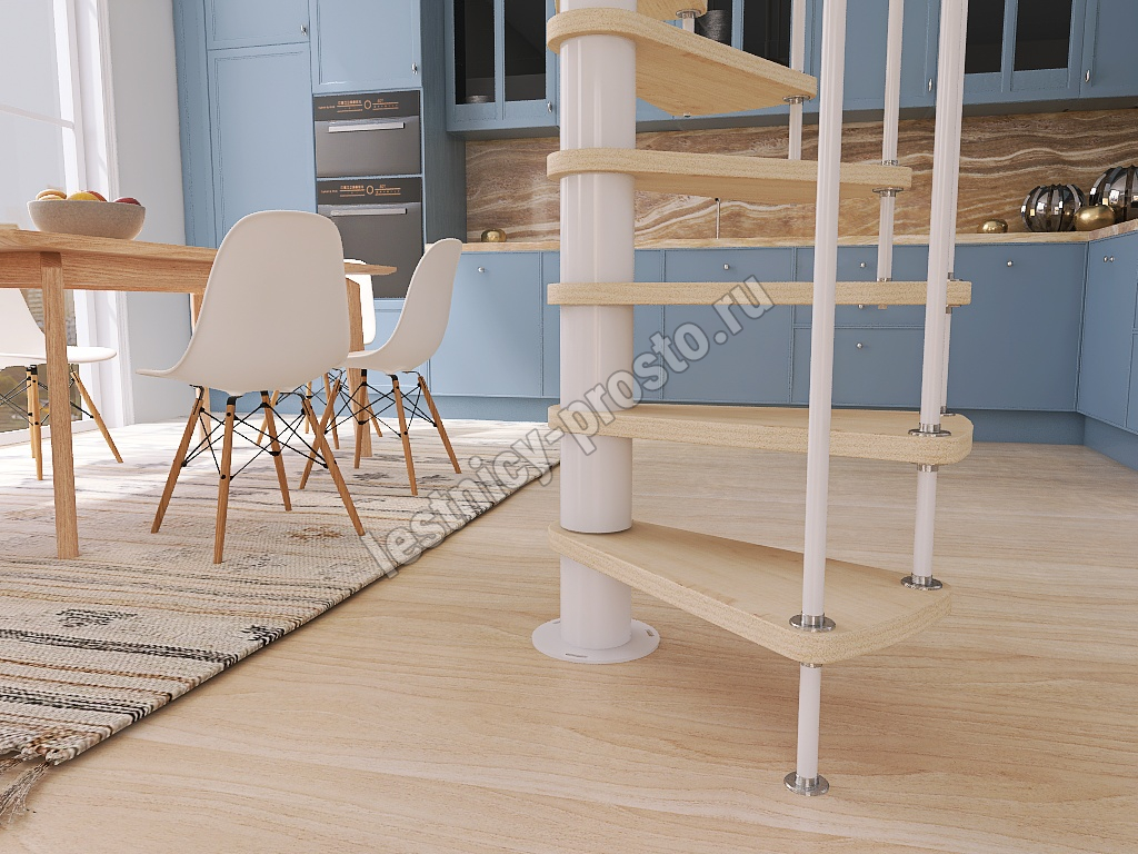 Винтовая лестница Prosto Spiral White D120см, h303.9-348,1 см, бук
