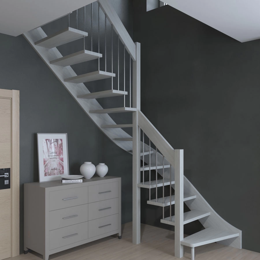 Решение о направлении поворота принимается при сборке лестницы - универсальная конструкция позволяет собрать правозабежную и левозабежную лестницы. Высота ступеней регулируется с шагом 3 мм. в пределах 217-247 мм., благодаря чему, лестница прекрасно подгоняется под необходимую высоту.